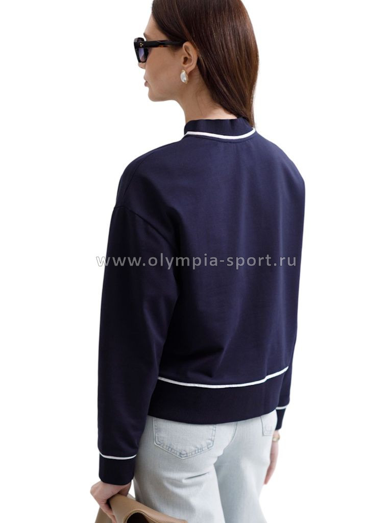 Бомбер темно-синего цвета среднего объема с застежкой на пуговицы выполнен из премиального футера двухнитки плотностью 240 Г/м2. Натуральный состав ткани обеспечивает дышащий эффект, мягкость и приятные тактильные ощущения, Эластичный материал позволяет свободно двигаться без стеснения, а также отлично сохраняет форму даже после длительного ношения. Гладкая лицевая сторона придает бомберу опрятный и дорогой вид. Повседневный бомбер отличается аккуратным силуэтом без лишнего объема и универсальной длиной, которая идеально подходит для повседневного образа. Особенность бомбера - контрастные канты на горловине, манжетах, поясе и вдоль застежки, которые добавляют современный акцент и делают его более выразительным. Представленная размерная линейка позволяет подобрать оптимальный вариант для любой фигуры и размера, на маленький или плюс сайз, обеспечивая свободу движений без компромиссов по стилю. Этот легкий бомбер станет отличным дополнением к базовому гардеробу, сочетая практичность с элегантностью.