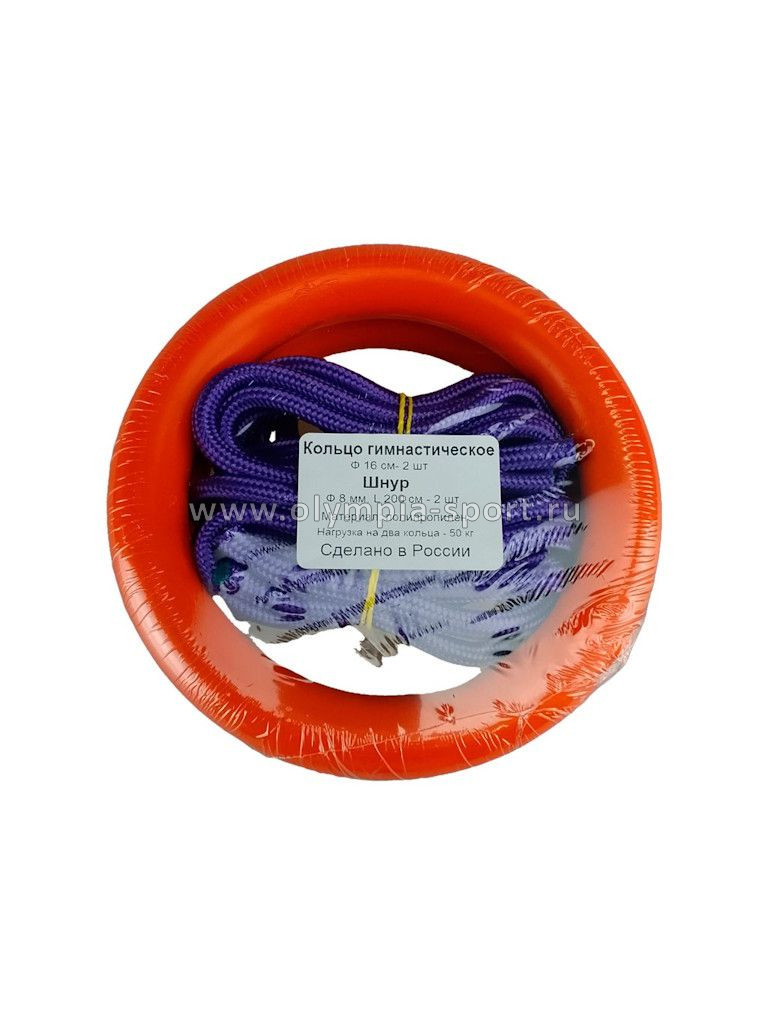 Кольца гимнастические д.16 см нагрузка 50 кг оранжевый